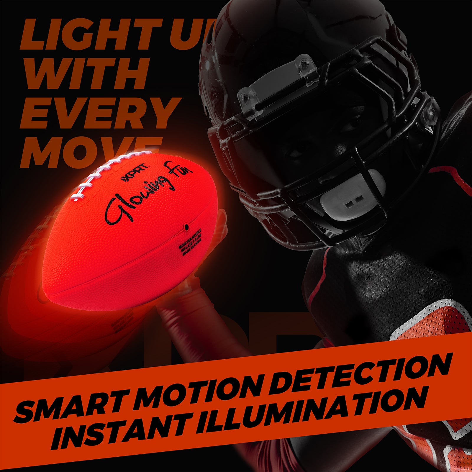 EVEN LIGHT DISTRIBUTION. Balanced internal lighting creates a consistent glow across the entire football for better visibility and control.