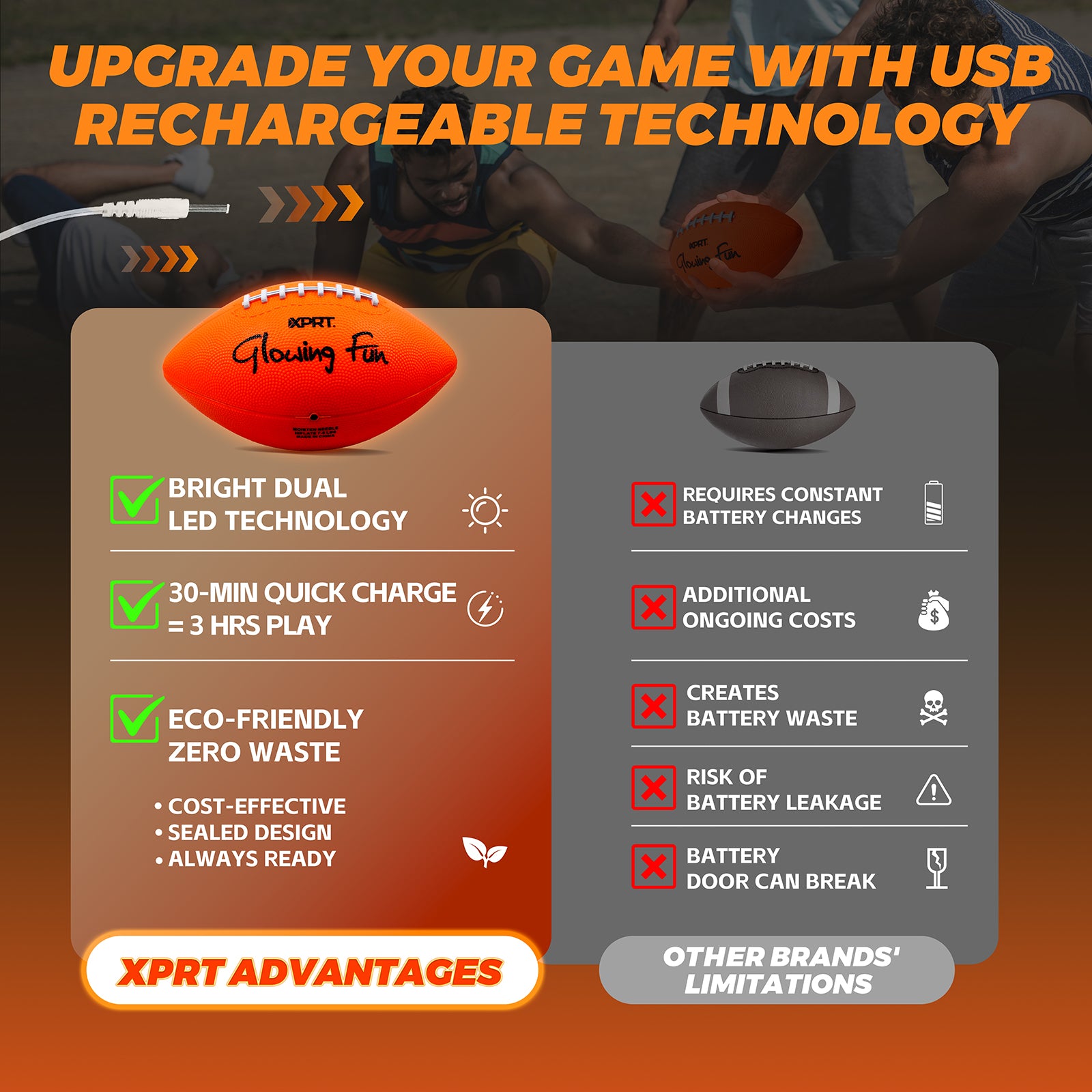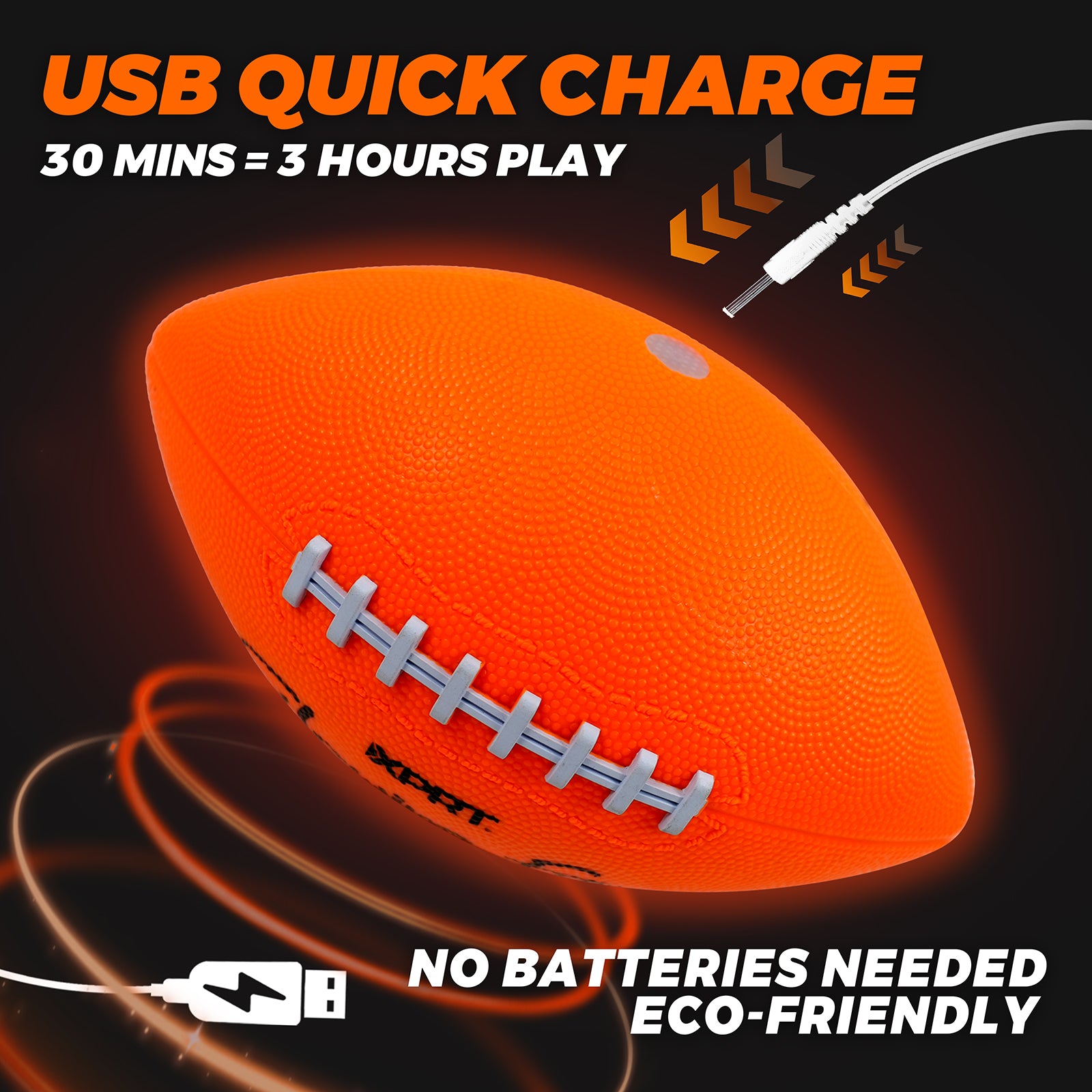 This football features a reinforced construction with a durable outer surface, internal nylon winding, and a rubber bladder for consistent shape and grip. The USB rechargeable design provides up to three hours of play from just a 30-minute charge, eliminating the hassle of disposable batteries while delivering reliable performance every time.