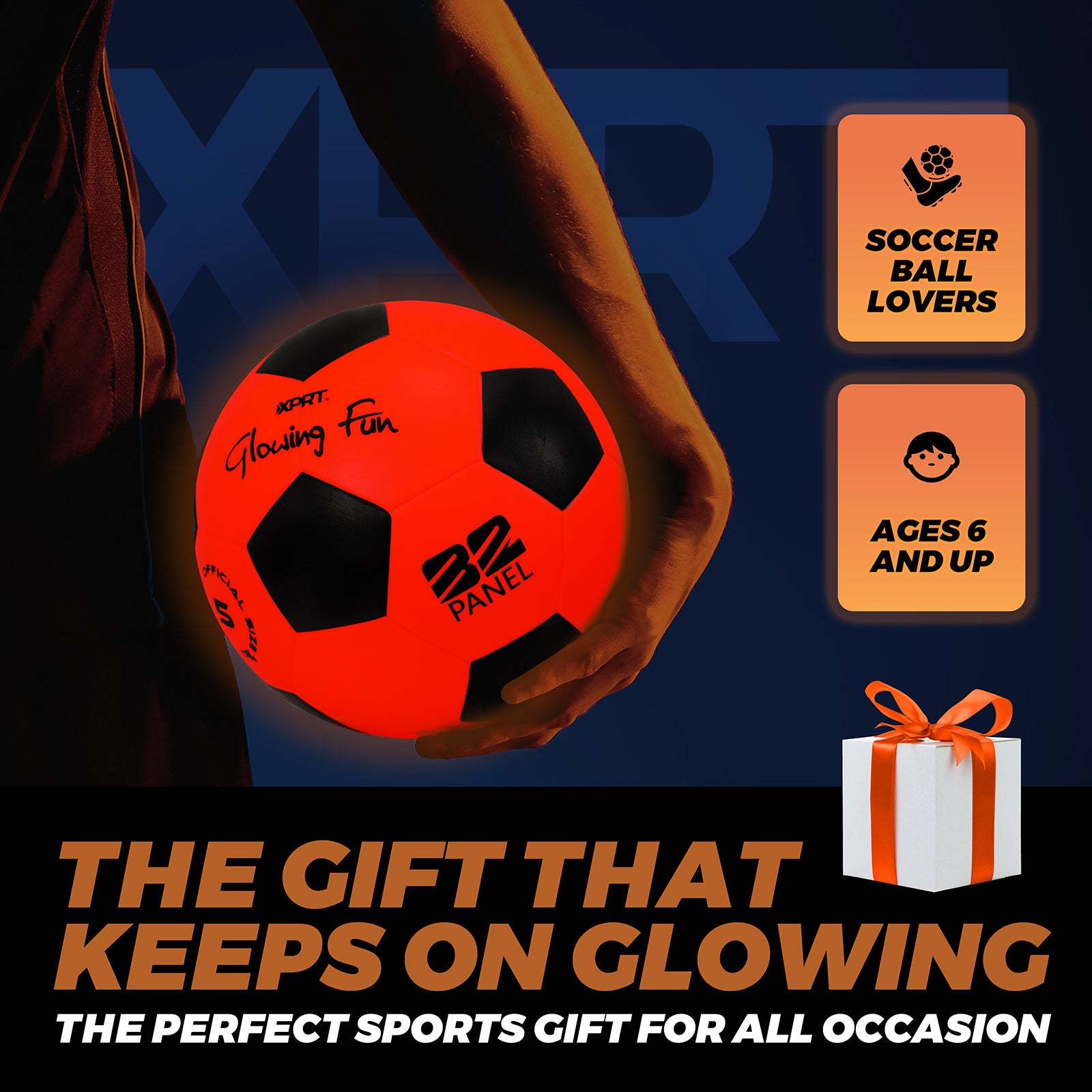 THE GIFT THAT KEEPS ON GLOWING. A unique, exciting, and practical gift for soccer lovers ages 6 and up.