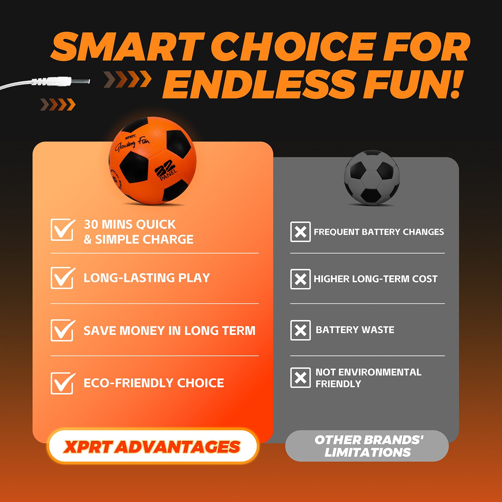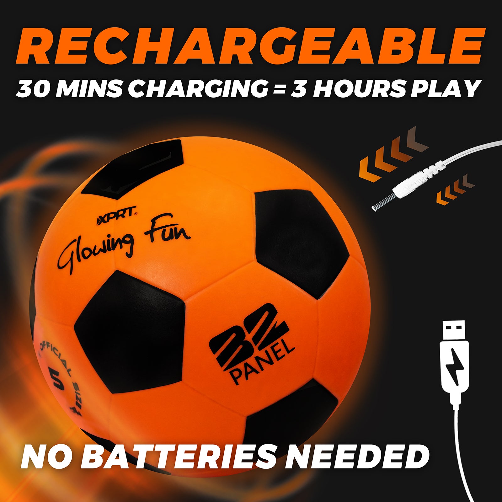 PLAY SOCCER AFTER DARK. Bright LED illumination makes the ball easy to see at night, extending playtime beyond daylight hours.