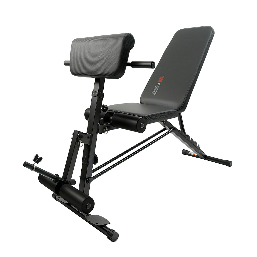 ALL-IN-ONE TRAINING SYSTEM — From chest press to leg curls and back extensions, this FID bench integrates a preacher curl pad, leg extension, and hyperextension station for complete upper and lower body workouts at home or in the gym.
